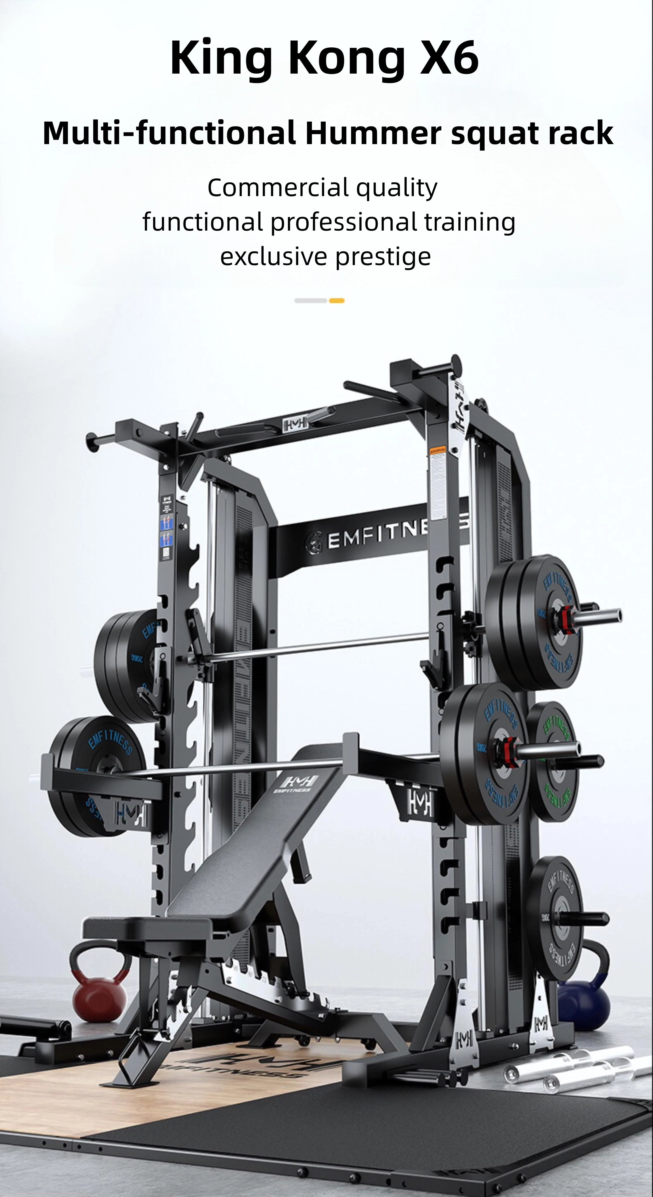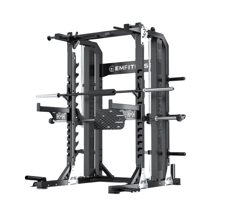 - Integrated Smith Machine: Features a butter-smooth, guided barbell path for absolute safety during solo lifts, muscle isolation, and high-rep finisher sets.