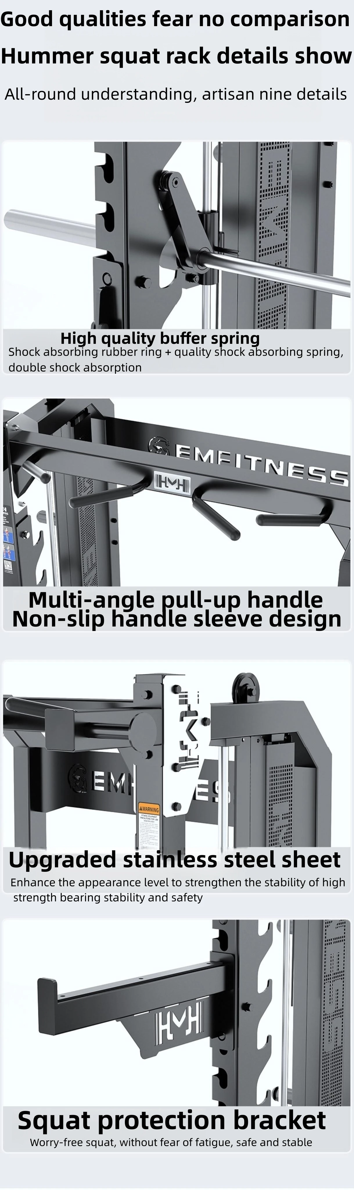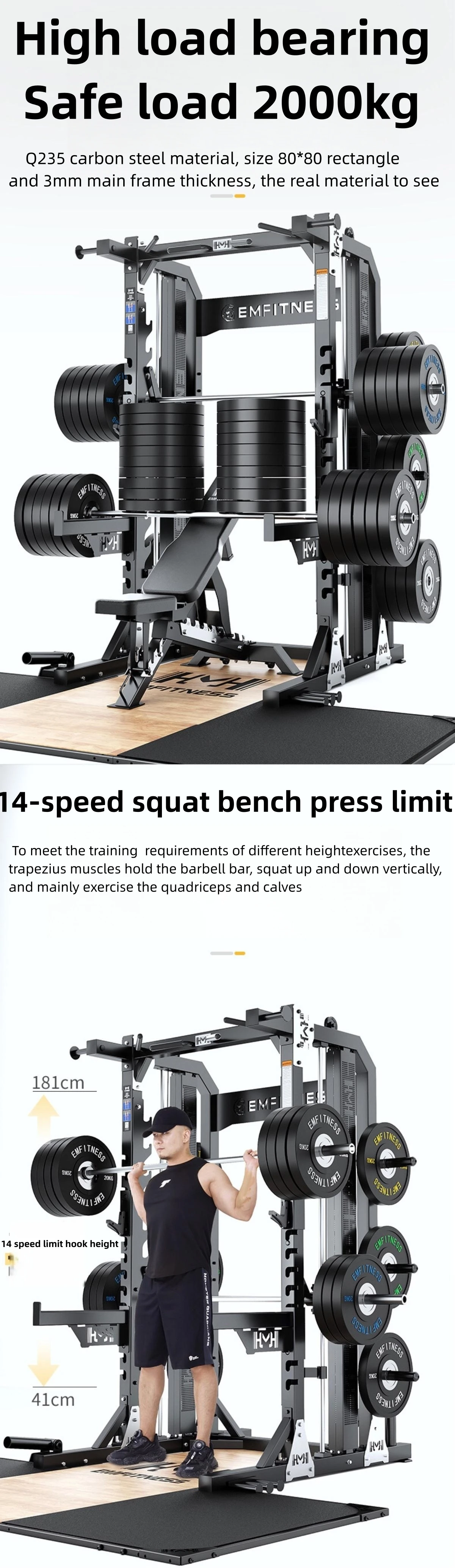 - Heavy-Duty Construction: Built with thick-gauge steel (visible in image) and precision engineering to ensure structural integrity under extreme loads. Designed for stability during repetitive, high-intensity workouts.
