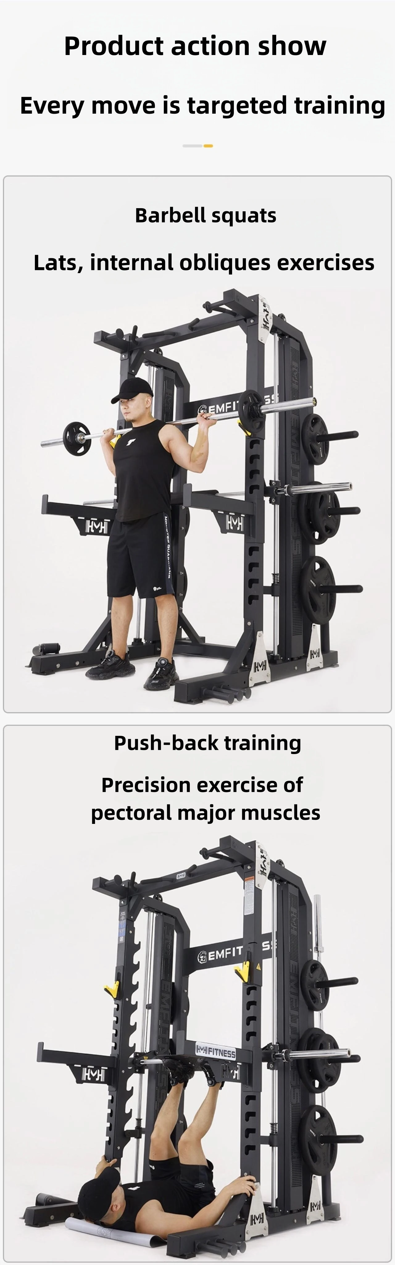 - Maximized Safety: The dual-system approach (Power Rack safety arms + Smith Machine lock mechanism) ensures that clients can confidently train to failure without needing a spotter.